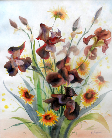 aquarelles, iris, tableaux, vente, aquarelles d'iris, tableaux d'iris
